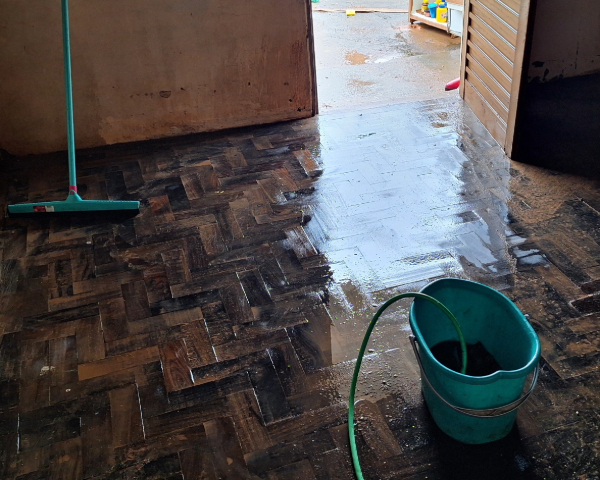 Slowly, donations started to come in from the Baptist mission and others to help us replenish. Everything we had at that time was from donations: from water to food baskets. Beyond belongings, the flood waters also destroyed our wood floors and compromised our walls. The cement was like a sponge that soaked up water. The smell in the house was terrible, and no matter how hard I cleaned, it would not go away; every time I cleaned my brick and cement walls, it would not be long before dirty water would leak out and run down the walls again. Every day I was cleaning those walls. People told me the walls would not dry out fully until the summer, which was many months away, but even a year later, my walls still have not fully dried out.