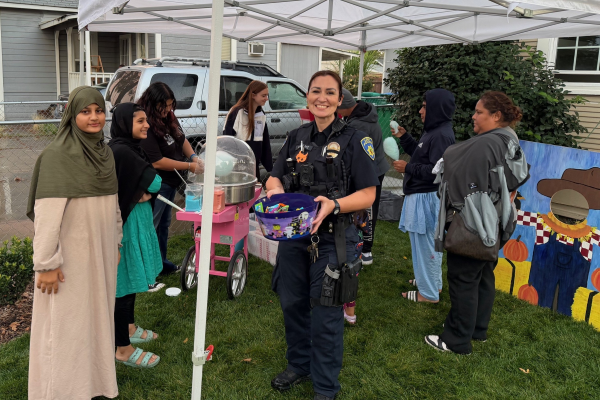 All evening, kids ran between games, parents lined up for cotton candy, and neighbors gathered under the tents to stay dry and talk. Even the police officers who attended ended up in meaningful conversations with families. Parents asked them to talk with their kids about the choices and challenges they were facing, and the officers stayed to listen and support.